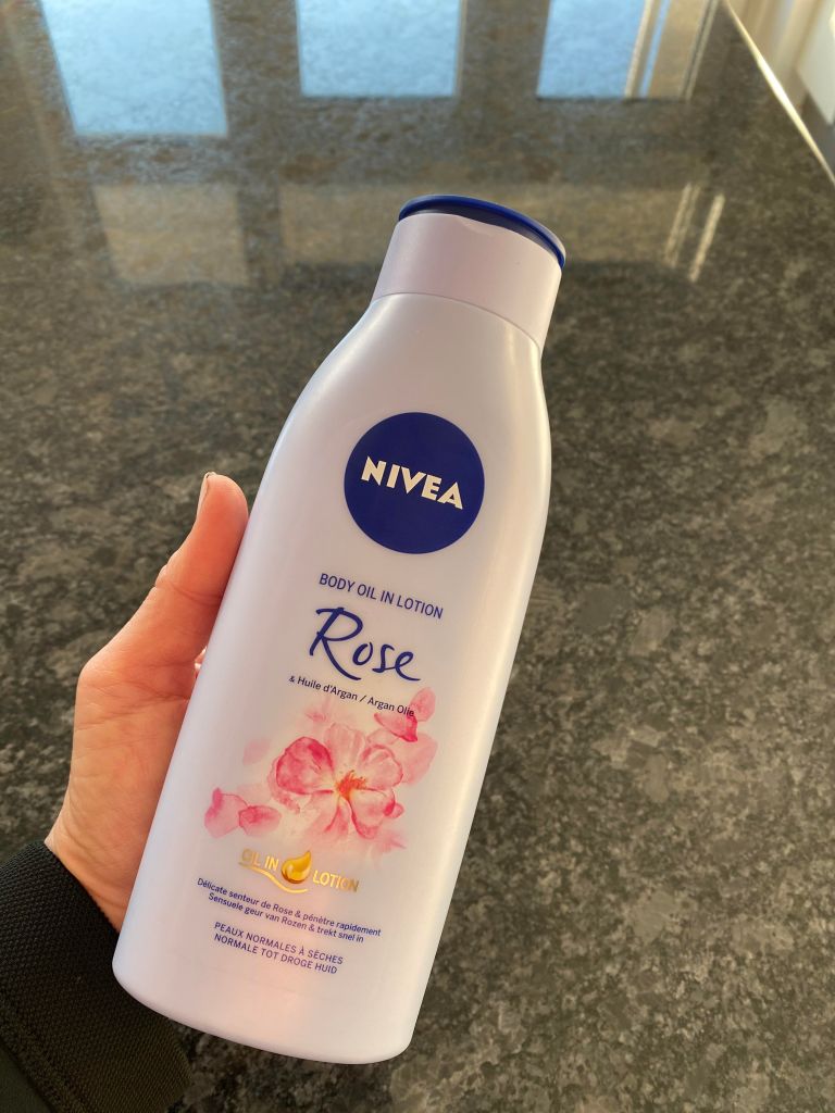 😊 – Nivea Body oil in lotion Rose & Argan oil – Perfect product to use in winter where you skin can get dehydrated and need more nourishing. Is like oil in a lotion without feeling heavy. It absorbs very quickly leaving your skin soft and hydrated. Great product.