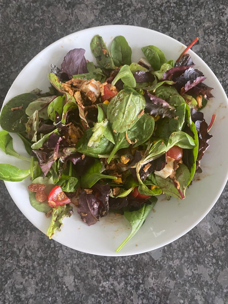 Goal 3: Have one meal of the day without carbs. Done!I love carbs and they are healthy but If I want to really start to get a better body composition I need to balance them better. So I eat a nice salad very fulfilling but without carbs. I hope I can sustain this goal.