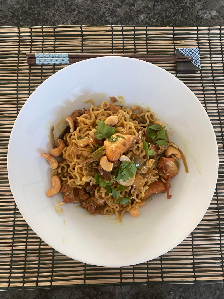 I wante dto do a Pad Thai but I didn’t have all the ingredients, so I create some sort of Thai chicken noodles and they were delicious.